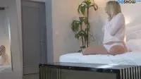 White Lingerie Blonde Seduction The video begins with a breathtaking blonde goddess adorned in sheer white lace lingerie that accentuates her tantalizing curves, inviting viewers into a world of desire and seduction.Her golden tresses flow down her back as her deep brown eyes sparkle with playful intensity, drawing the viewer in with promises of passion and pleasure to come.The luxurious bedroom, piled high with pillows and blankets, sets an irresistibly sensual ambiance for what's about to unfold.In the first scene, the stunning blonde bends over on a massive bed, her body contorted in such a way that her firm, round ass cheeks and enticing cunt are exposed, leaving nothing to the imagination.The camera focuses intently as her hands grip the edges of the mattress, nails perfectly manicured and painted to match her sultry ensemble.Her full, perky tits spill out of her lacy white bra, tempting the viewer with their firmness and alluring nipples that stand at attention, just begging for a tongue or a man's eager mouth to wrap around them.As the video continues, the blonde teases with an artful striptease, slowly sliding down her panties until only the lacy edge remains.With an expert flick of her wrist and a seductive smirk, the garment disappears to reveal her perfectly hairless pussy, glistening wet with arousal, ready for the pleasure to ensue.The sensual scenes progress into a captivating sequence in which the blonde and a strong, dominant man exchange intimate acts of passion and submission.Their bodies meld together like puzzle pieces, limbs entwining and writhing as they explore the heights of lustful abandon.The man's hard cock is unyielding between her legs as she grips his firm muscles with eager hands, while her mouth finds purchase on his rock-hard nipples, sucking them hungrily before moving to his throbbing member that aches to be plunged inside her.In the climactic scene, both lovers find themselves at the pinnacle of passion.The blonde's cunt clenches eagerly around him as he pounds away at her, each thrust more powerful and hungry than the last.Her hands claw at the sheets beneath them while her nails dig deep into the man's back, leaving no doubt as to just how much she desires him in that moment.Their breaths are ragged and wild their eyes locked in a gaze of pure intensity as they reach the brink of release.As they tumble over, enveloped in waves of pleasure, they embrace each other tenderly, the sweat from passion dripping onto the soft sheets below them - a testament to the white lingerie that started it all.The video ends with the blonde goddess looking into the camera with one final smirk of satisfaction, leaving viewers with the tantalizing taste of their own desire lingering on their tongues.